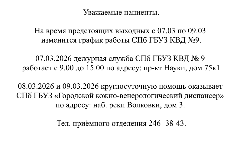 © СПб ГБУЗ "Кожно-венерологический диспансер №9"